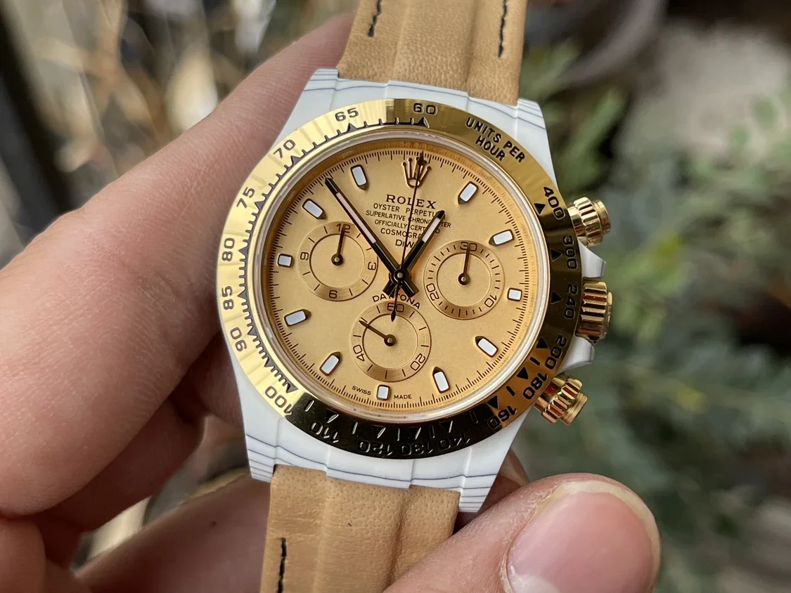 ROLEX DAYTONA DIW WHITE CARBON REPLICA WATCHES YELLOW DIAL 40MM