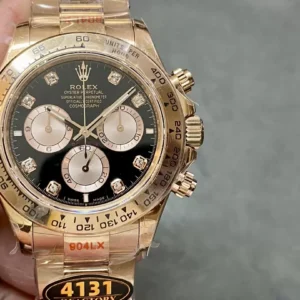 ROLEX DAYTONA IMITATION WATCHES BLACK DIAL RHINESTONES HOURS ROSE GOLD CASE QF FACTORY 40MM