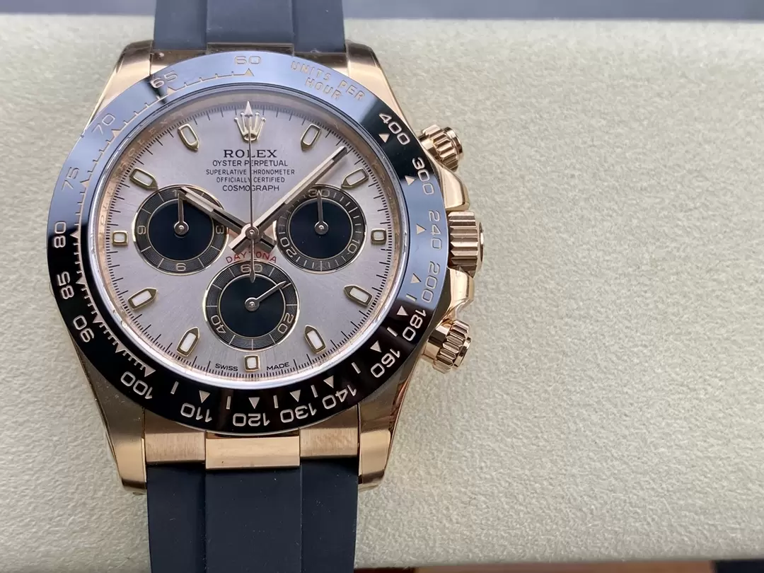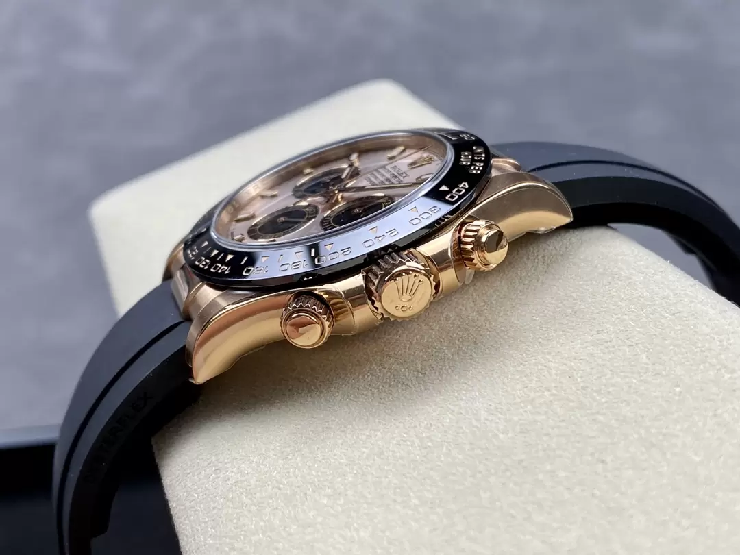 ROLEX DAYTONA IMITATION WATCHES ROSE GOLD PLATE INDEX HOURS OYSTER FLEX STRAP CLEAN FACTORY 40MM