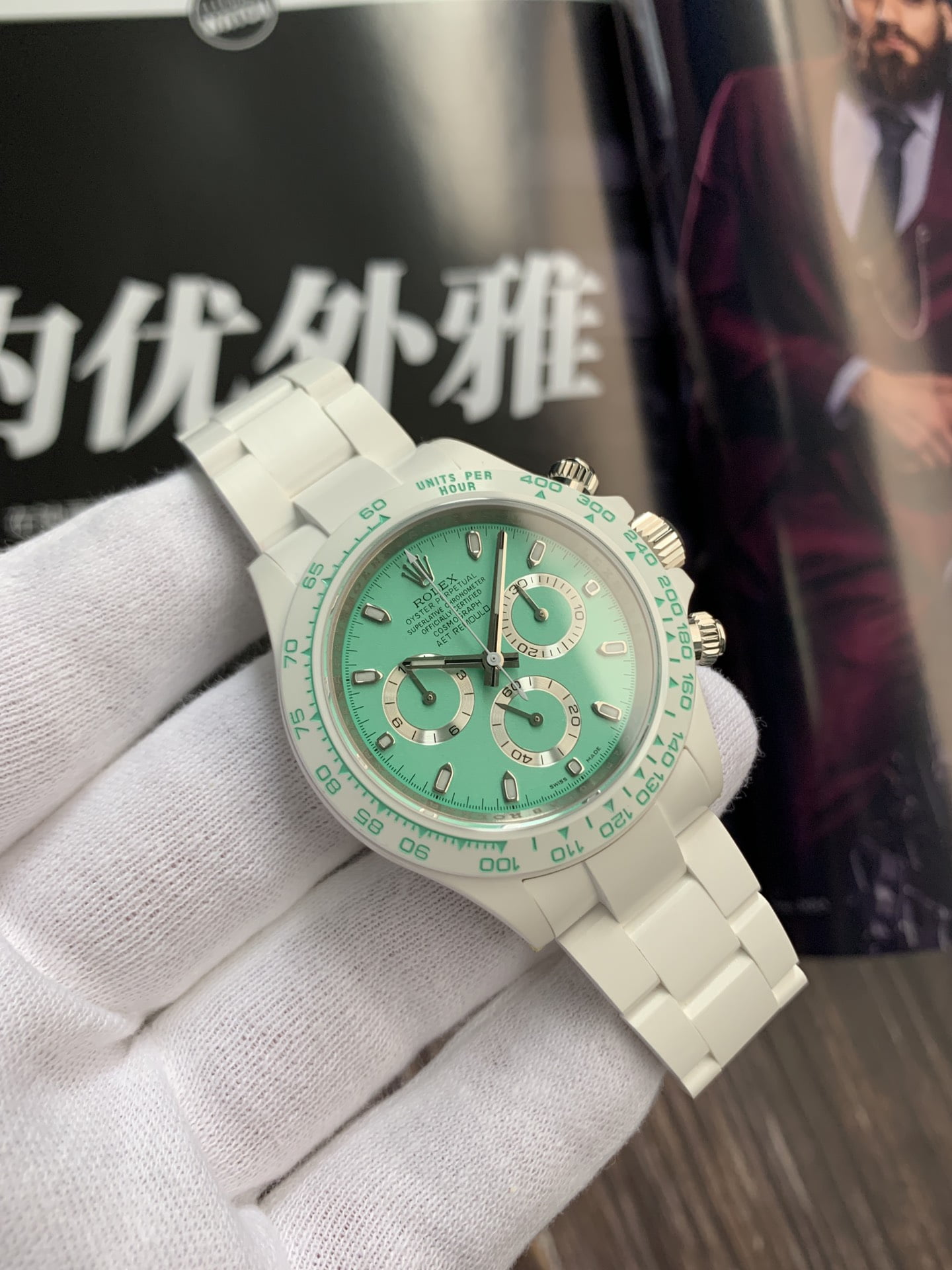 ROLEX DAYTONA REPLICA WATCHES MINT GREEN DIAL INDEX HOURS CERAMIC AET FACTORY 40MM