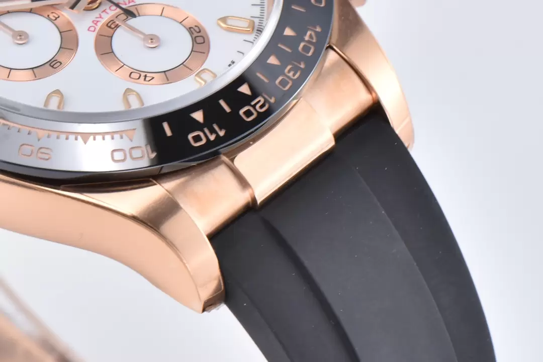 ROLEX DAYTONA REPLICA WATCHES WHITE DIAL INDEX HOURS ROSE GOLD PLATE CLEAN FACTORY 40MM