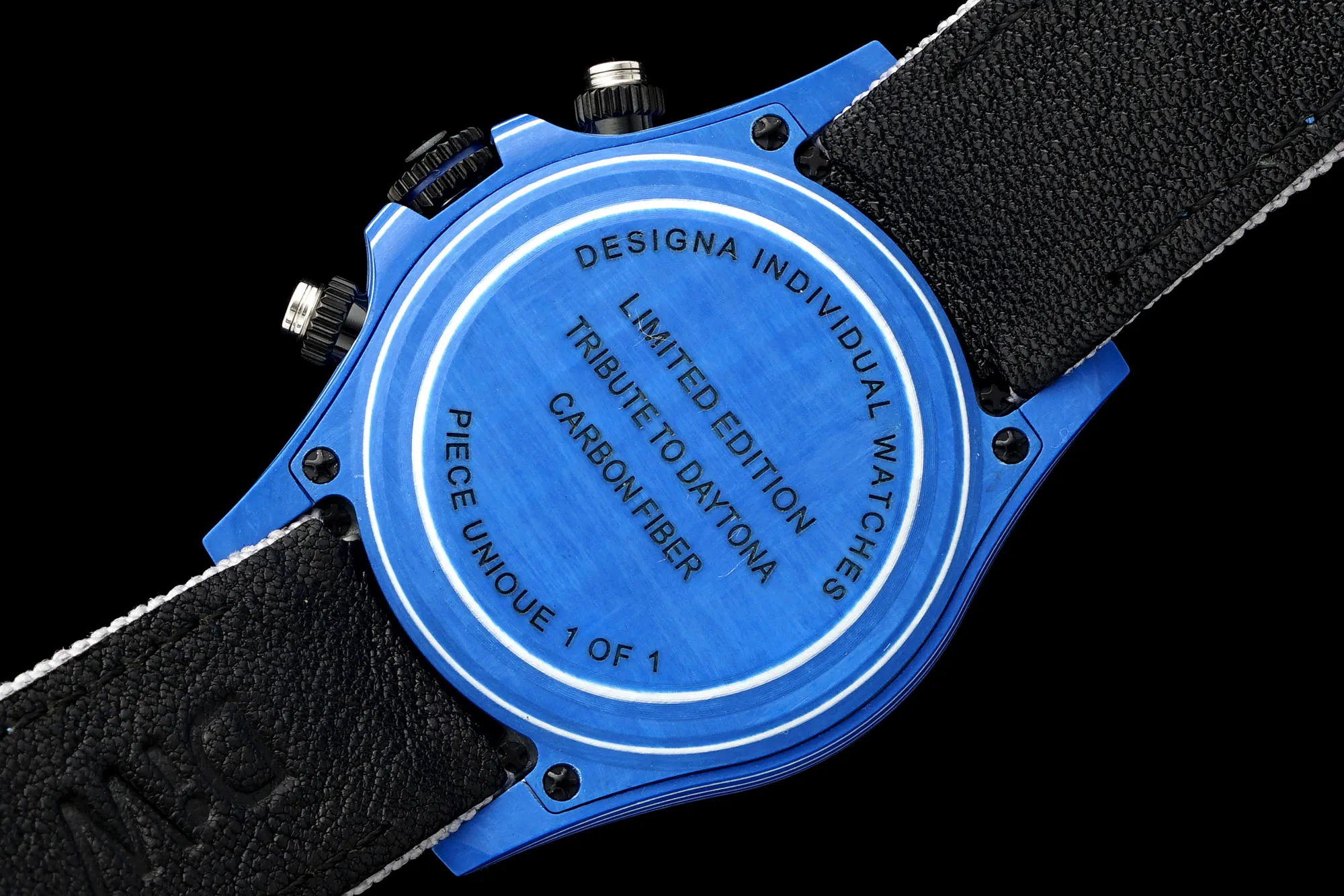 ROLEX DIW DAYTONA LUXURY IMITATION WATCHES BLUE CARBON CASE GREY DIAL FABRIC STRAP DIW FACTORY 40MM