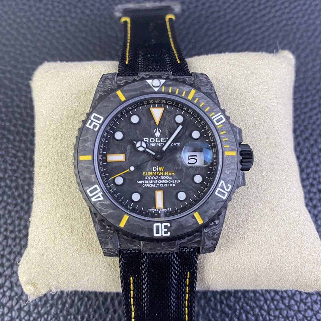 ROLEX SUBMARINER GOOD KNOCK OFF WATCH YELLOW CARBON FABRIC STRAP VS FACTORY 40MM