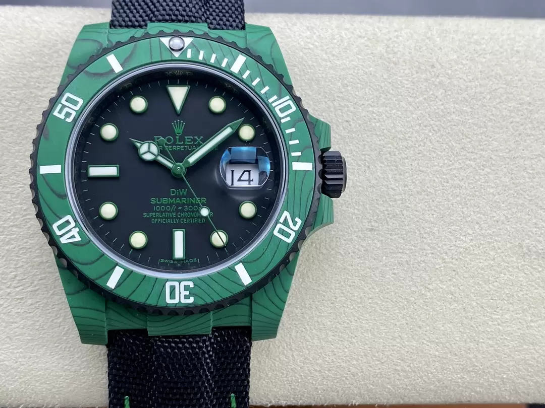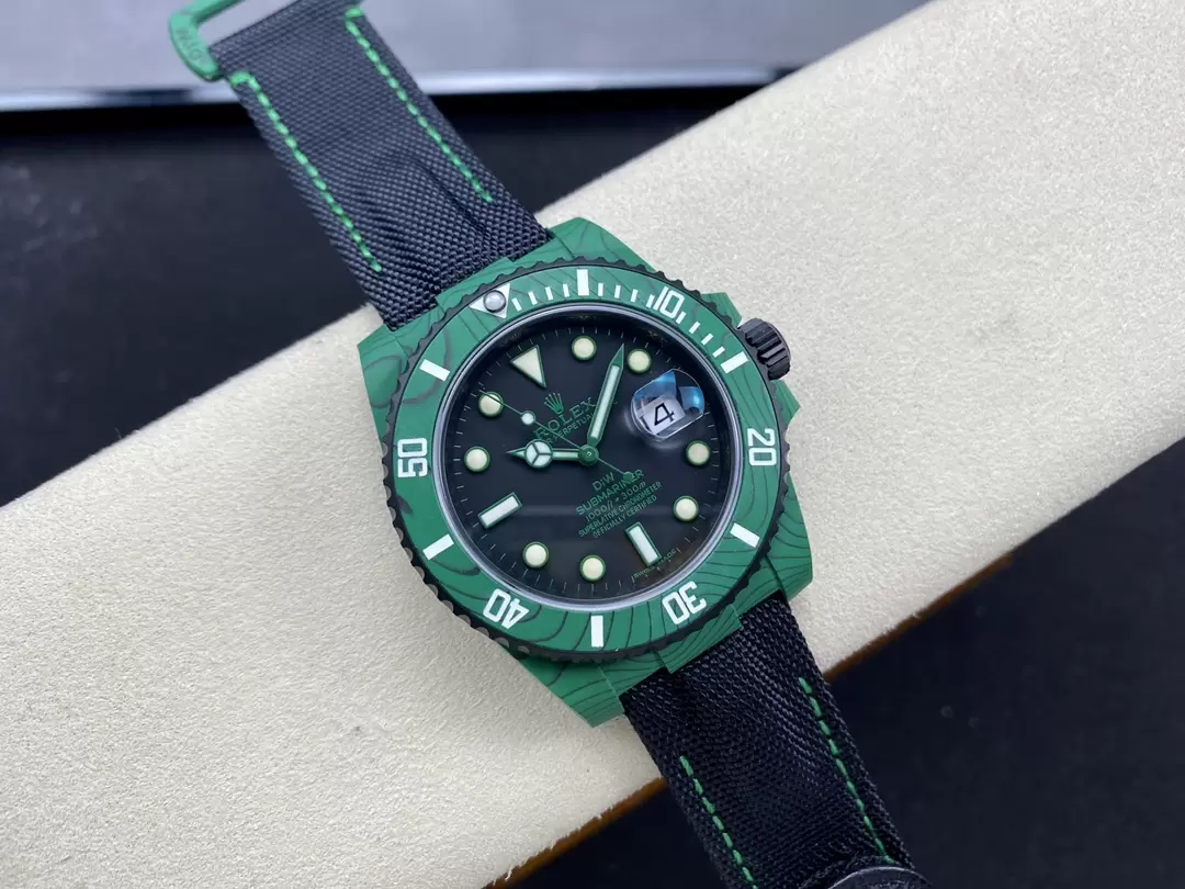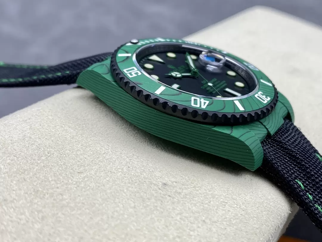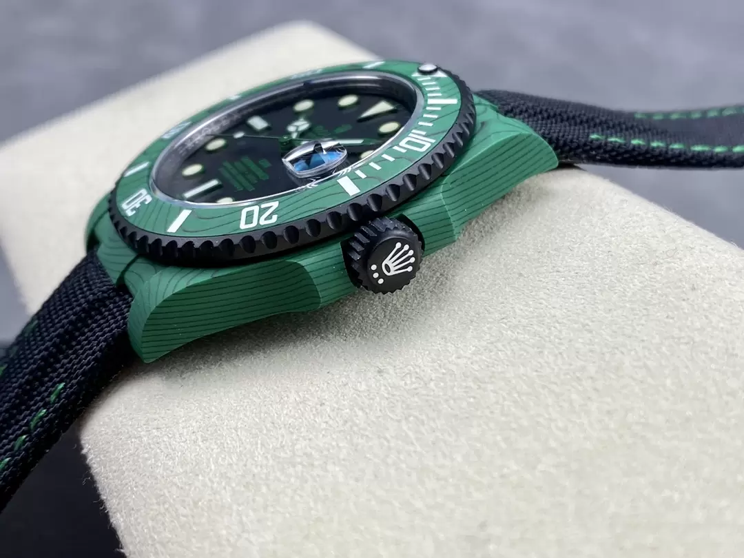 ROLEX SUBMARINER LUXURY FAKE WATCHES GREEN CARBON GREEN DIAL FABRIC STRAP VS FACTORY 40MM