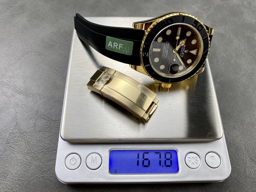 ROLEX YACHT-MASTER BEST REPLICA WATCHES GOLD PLATE VERSION CUSTOM WEIGHT BLACK DIAL AR FACTORY 40MM