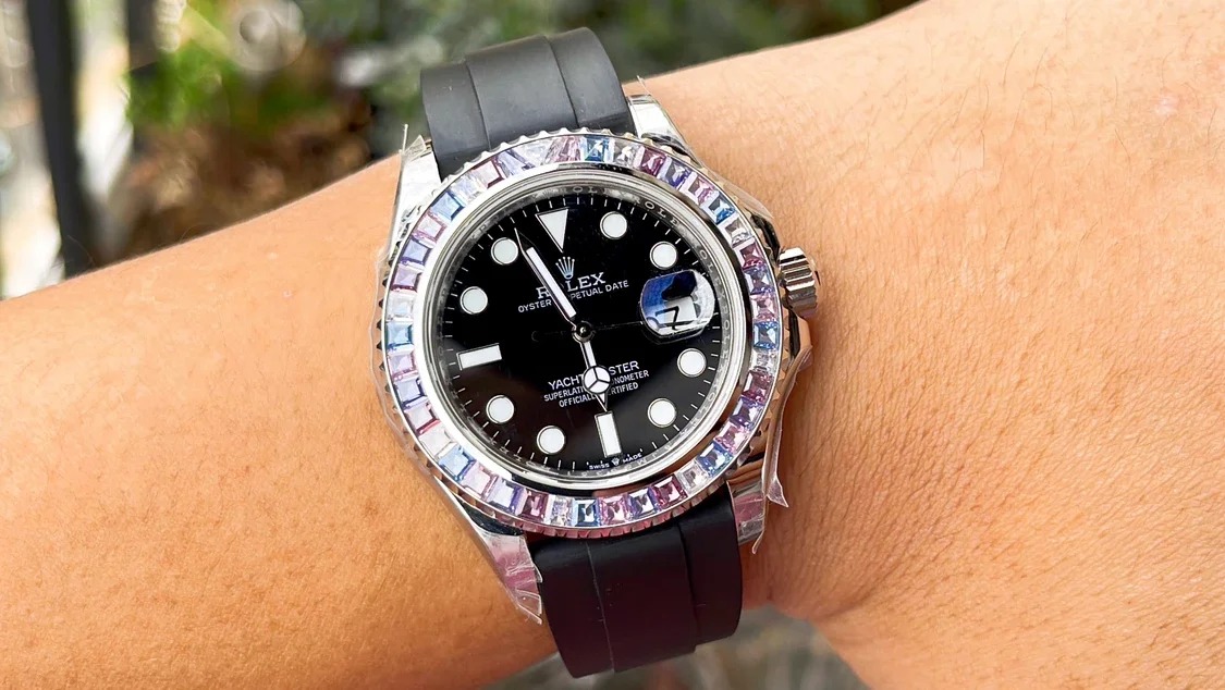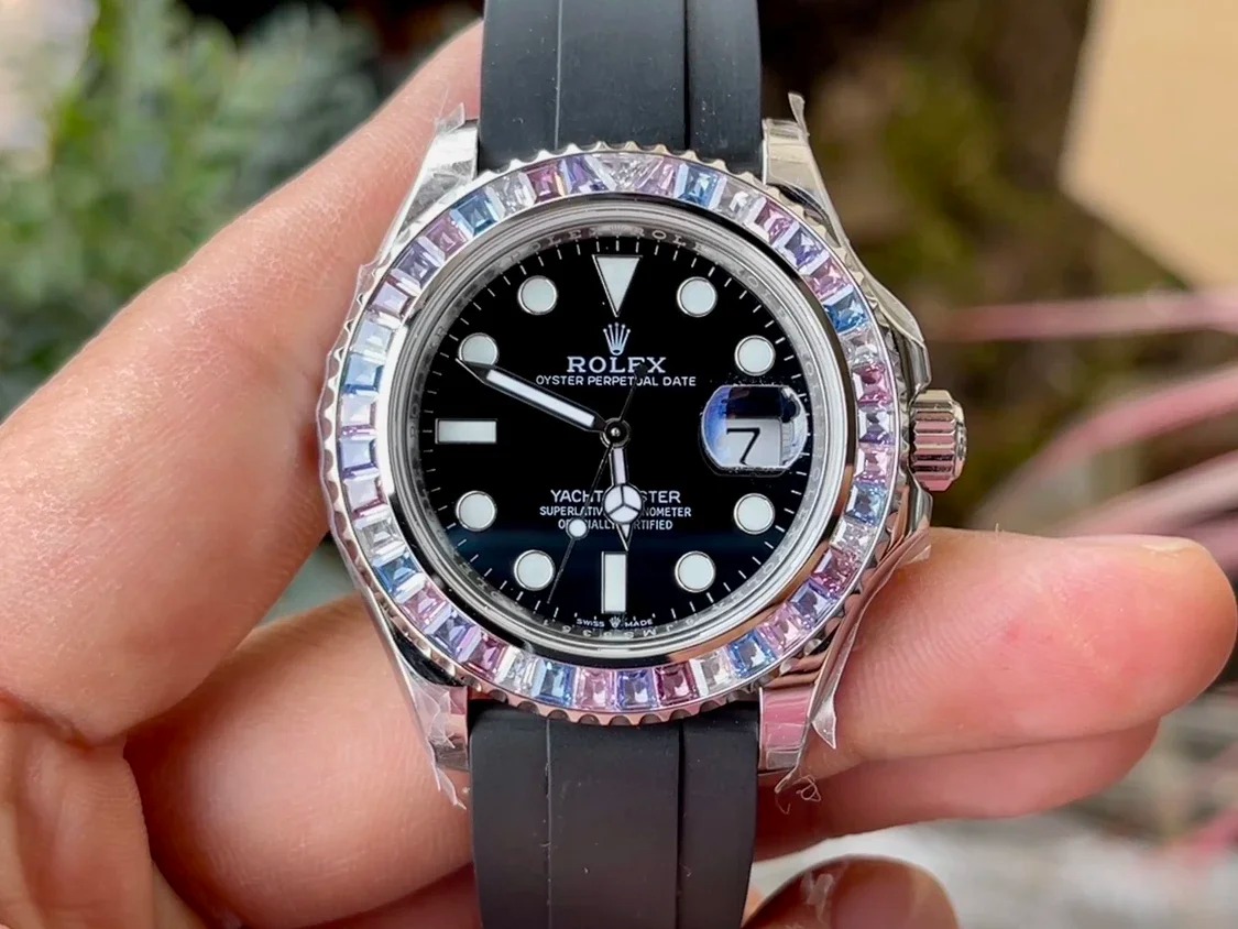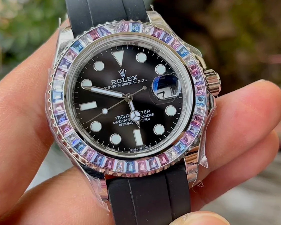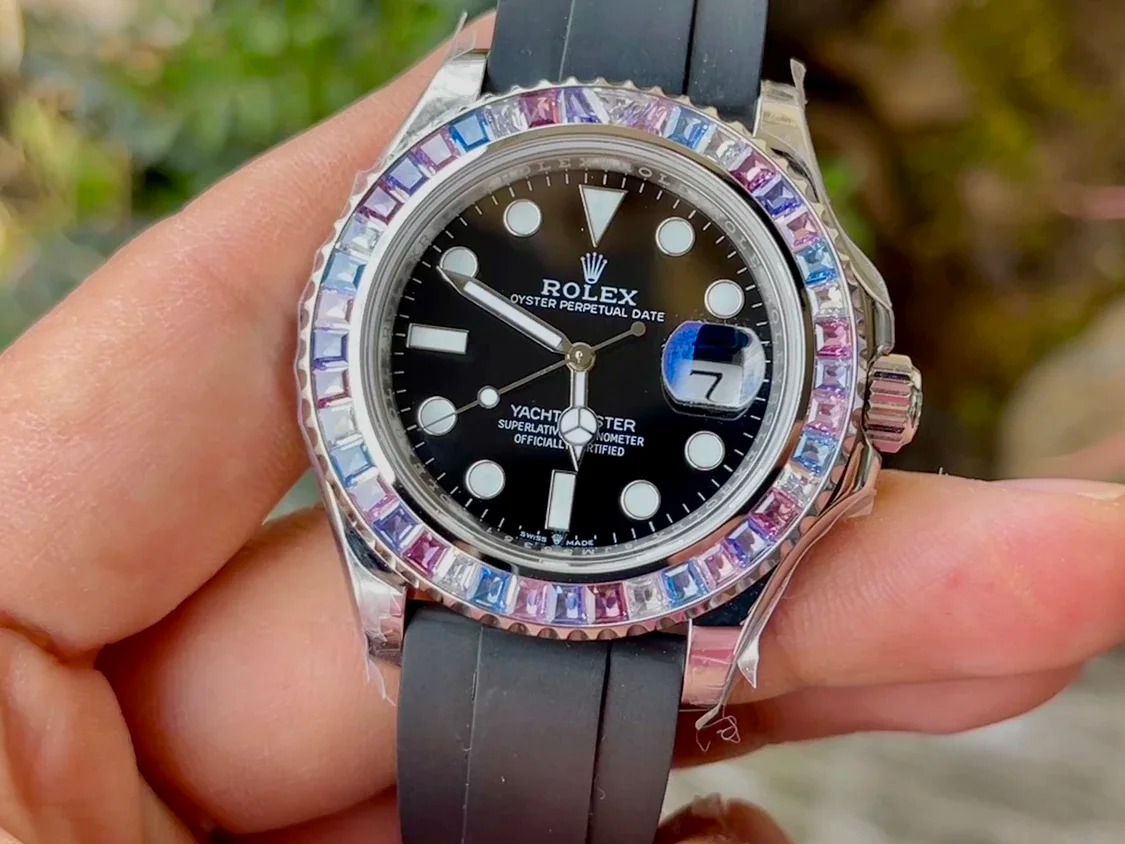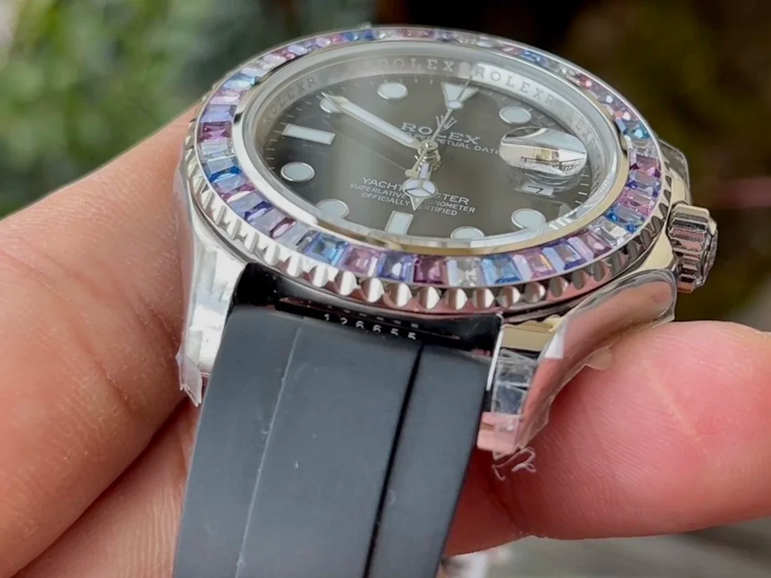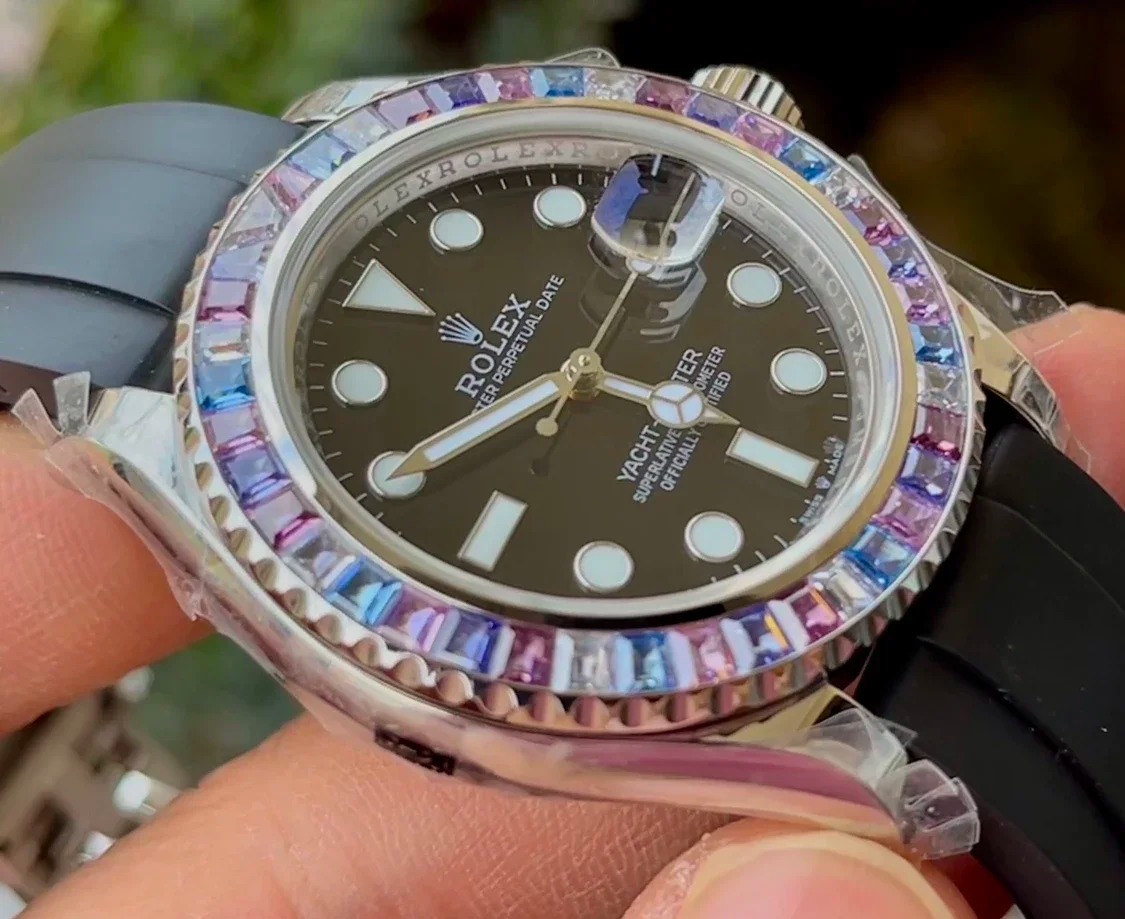 ROLEX YACHT-MASTER REPLICA WATCH FULL STONE BAGUETTE BEZEL 41MM