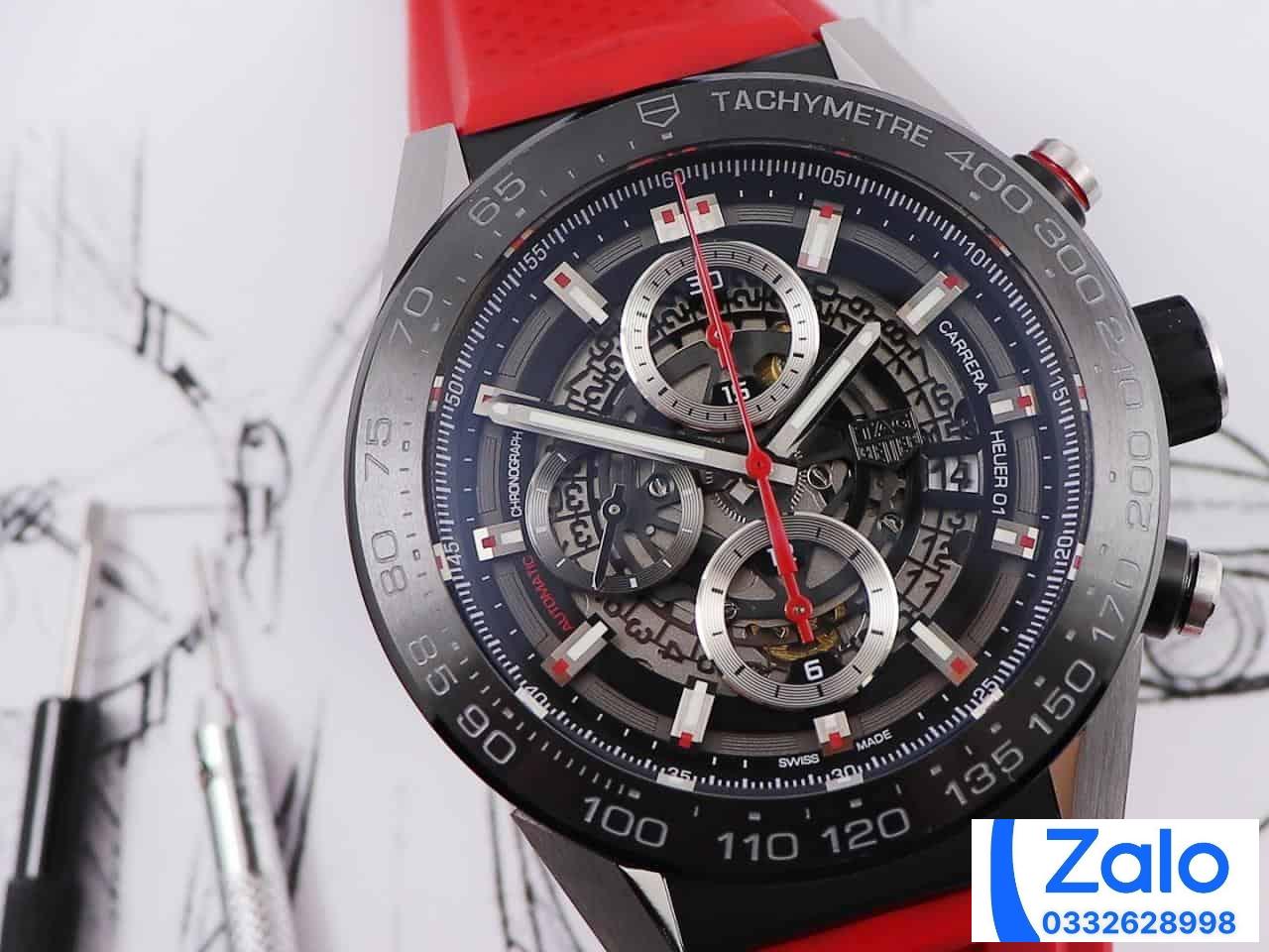 TAG HEUER CARRERA CHORONOGRAPH CAR2A1Z FAKE WATCH RED RUBBER STRAP 45MM