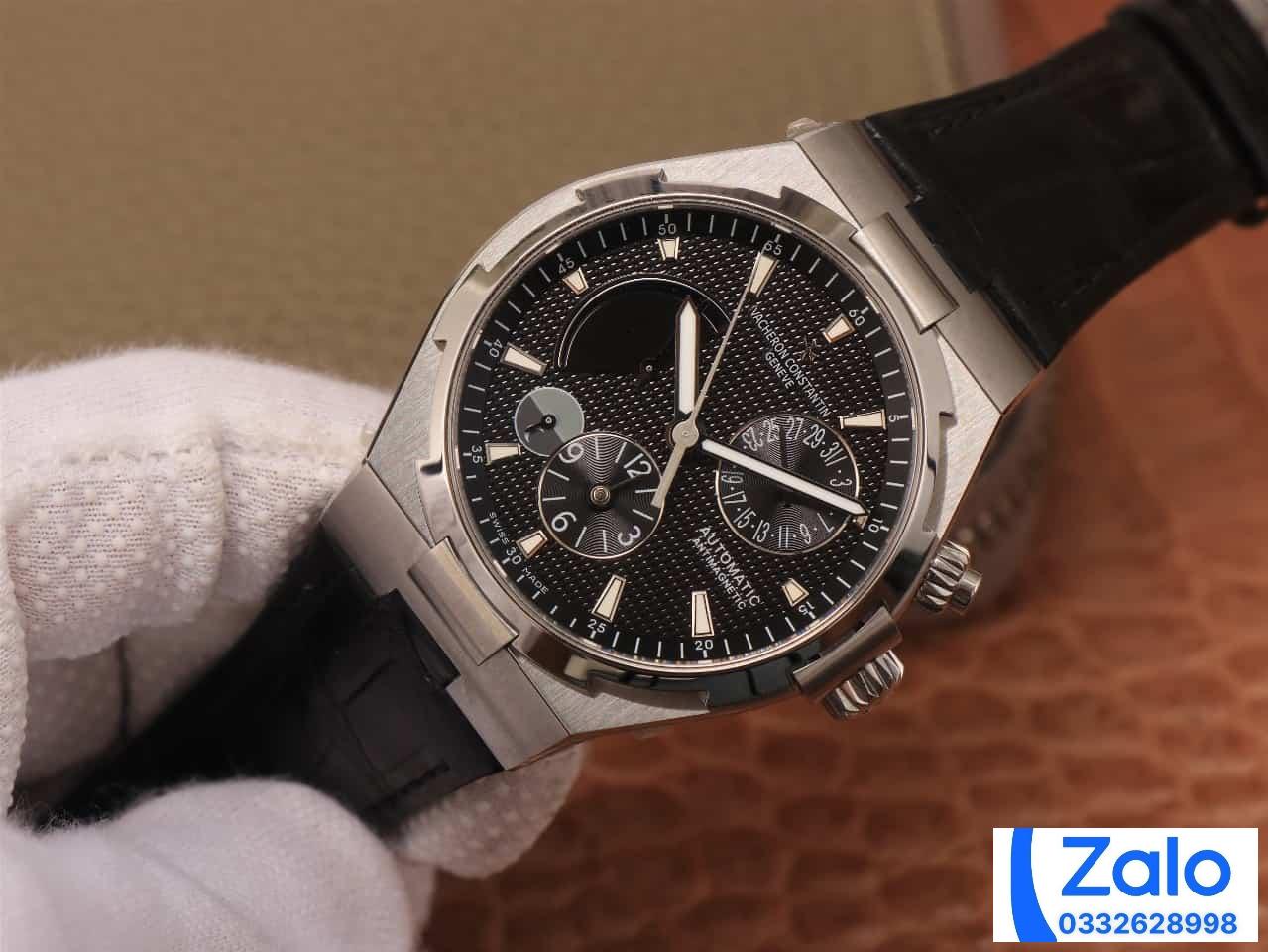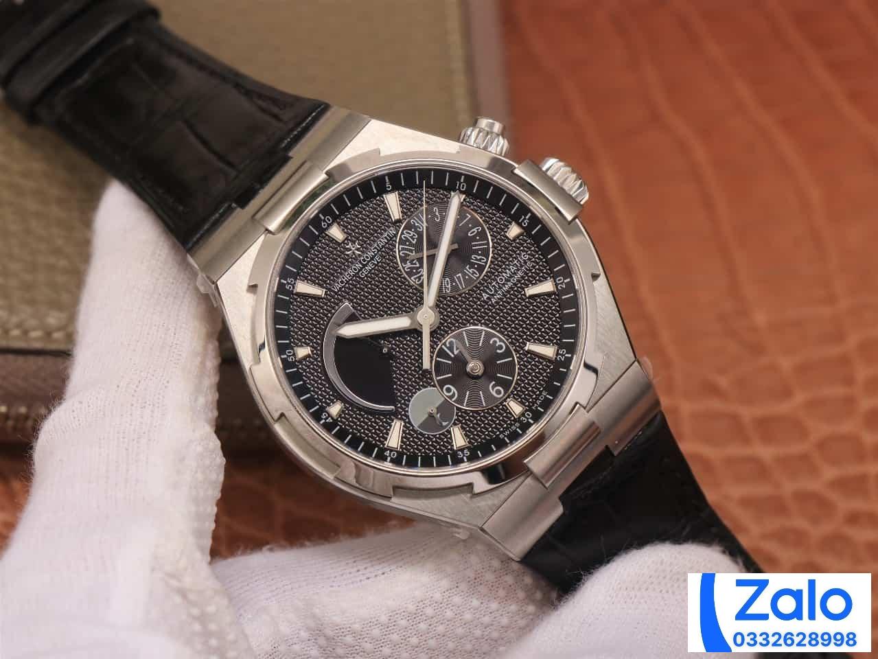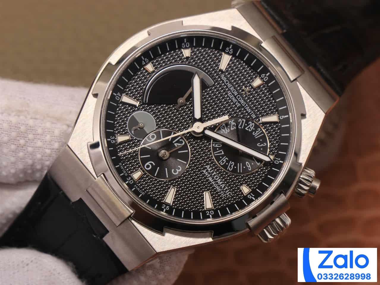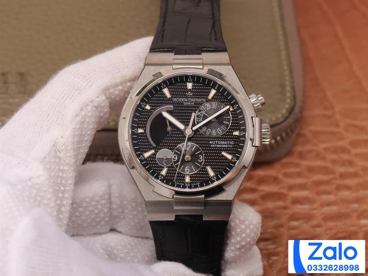 VACHERON CONSTANTIN OVERSEA TWA HIGH END WATCH REPLICAS BLACK DIAL LEATHER STRAP 42MM